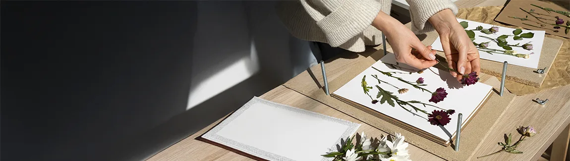 - Fleurs séchées et pressées pour la décoration